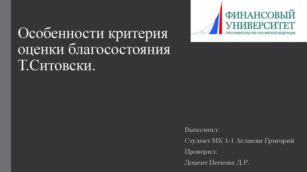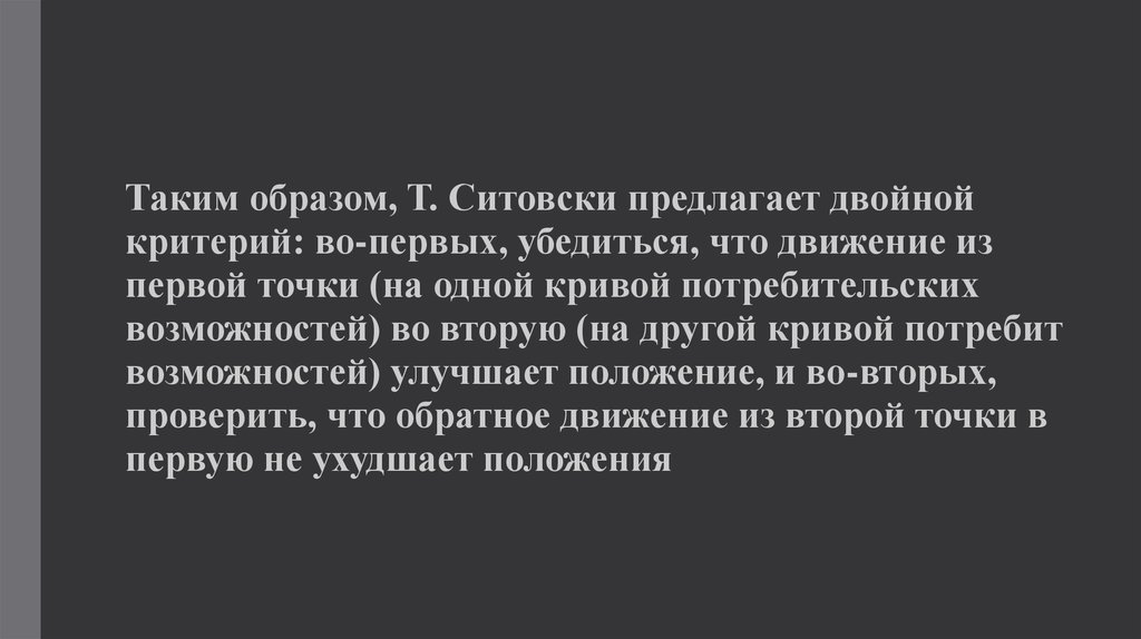 1. Особенности критерия оценки благосостояния Т.Ситовски.