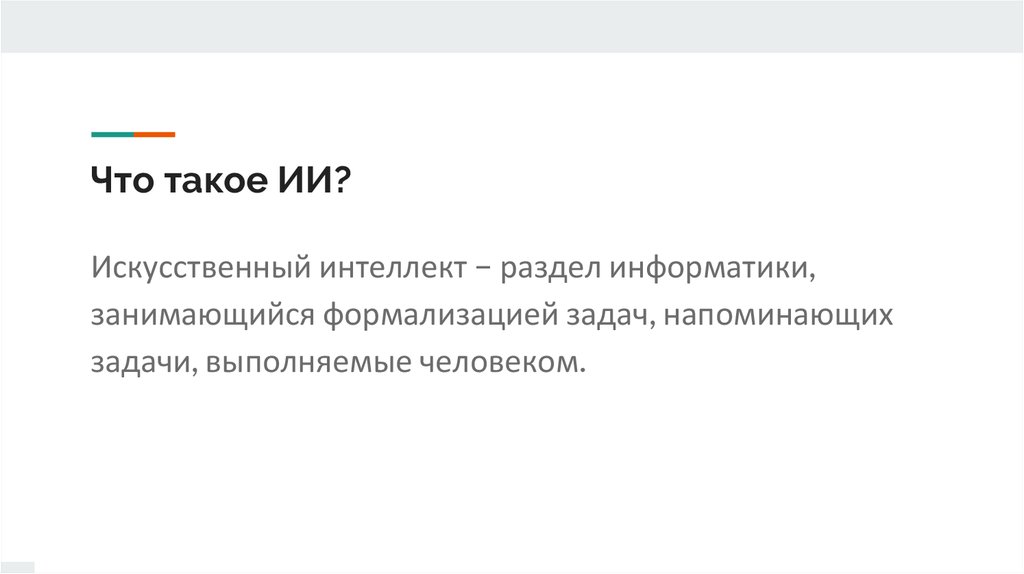 Что такое ИИ?Искусственный интеллект – раздел информатики,