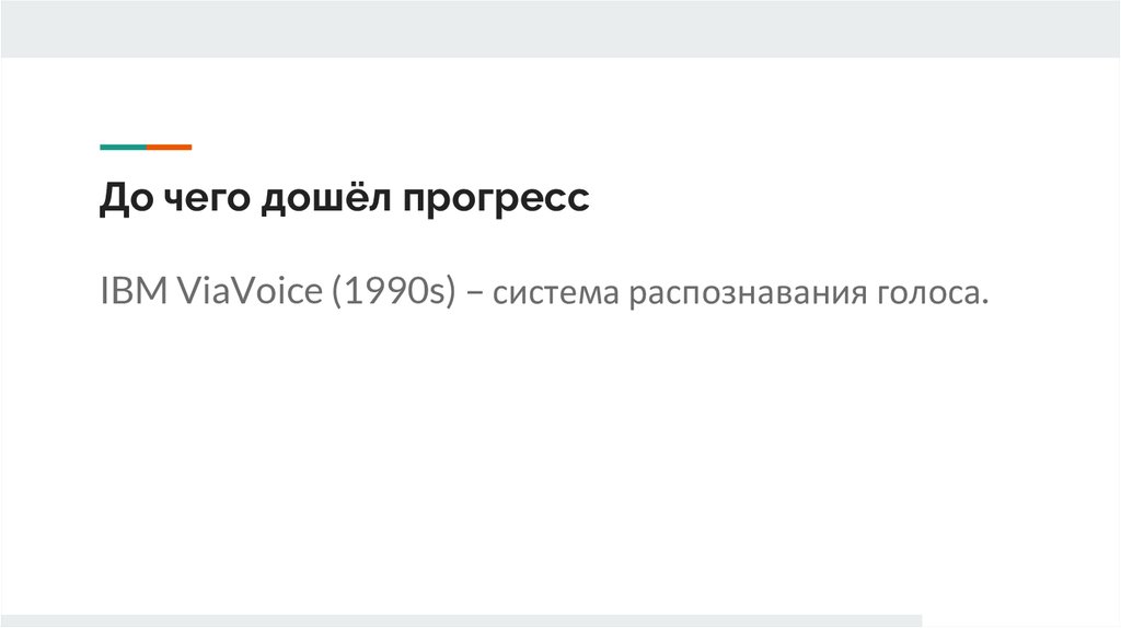 До чего дошёл прогрессIBM ViaVoice (1990s) – система распознавания голоса.