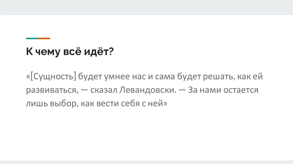 К чему всё идёт?«[Сущность] будет умнее нас и сама будет решать, как ей