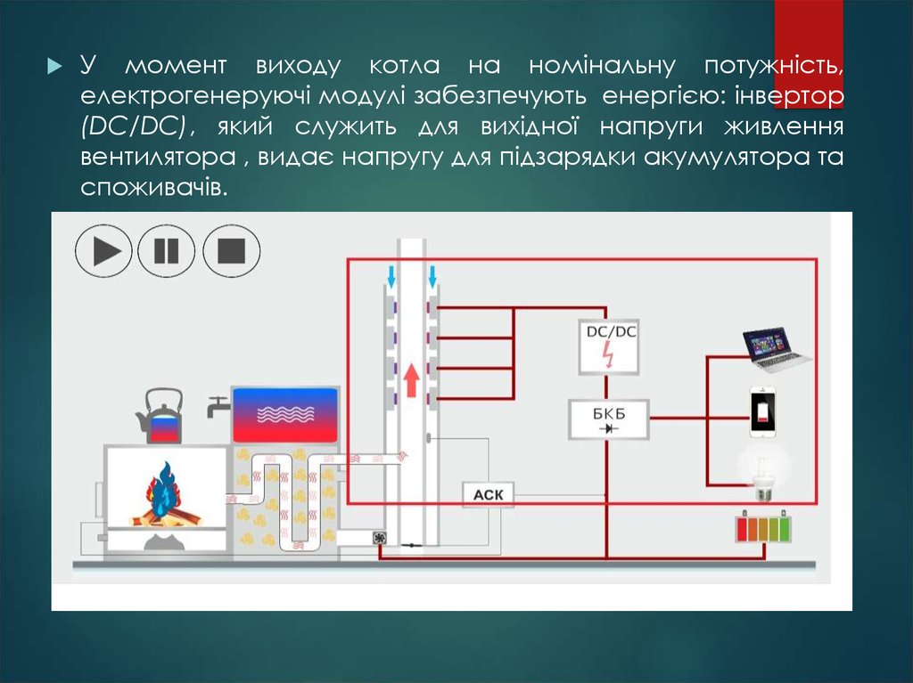 У момент виходу котла на номінальну потужність,електрогенеруючі модулі забезпечують енергією: інвертор