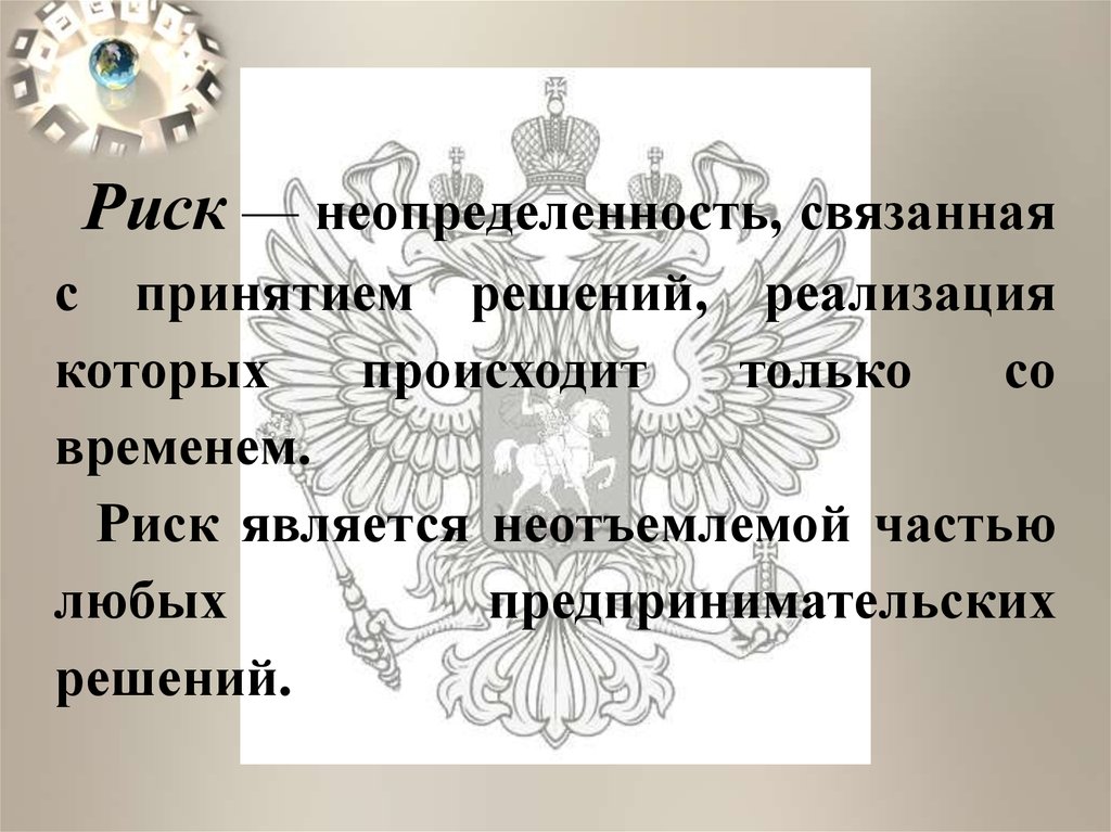 Риск — неопределенность, связаннаяс принятием решений, реализация