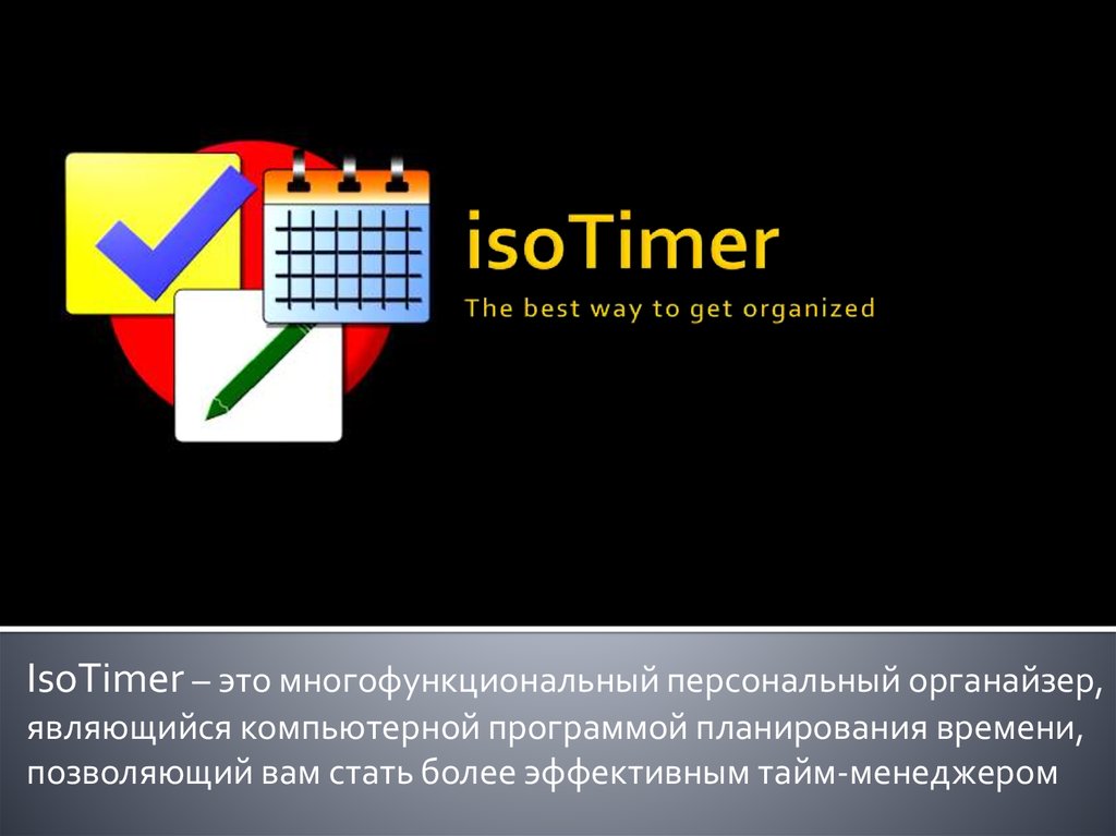 IsoTimer – это многофункциональный персональный органайзер,являющийся компьютерной программой планирования времени,