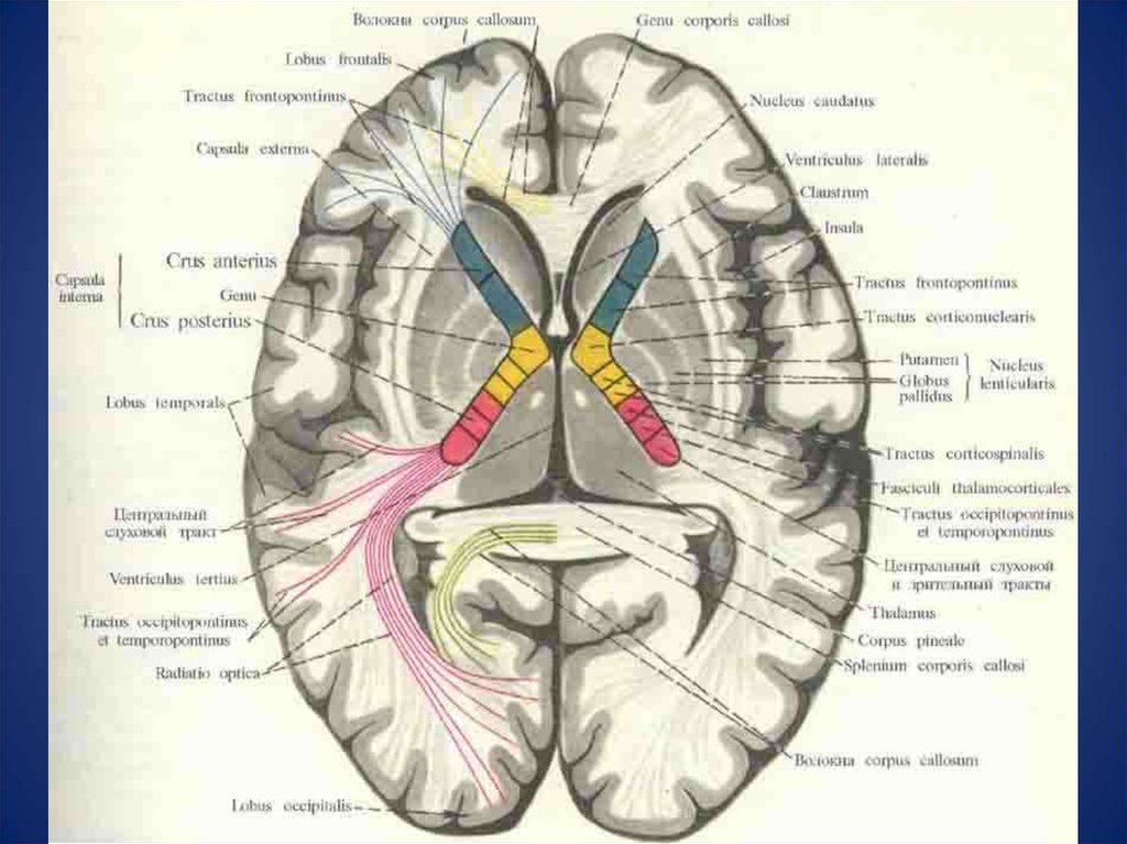 Фронтальный разрез впереди передней спайки, commissura anterior.)13.