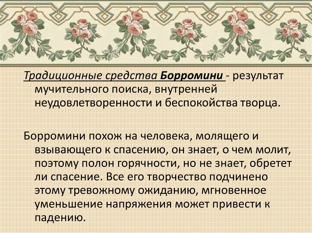 Традиционные средства Борромини - результатмучительного поиска, внутренней