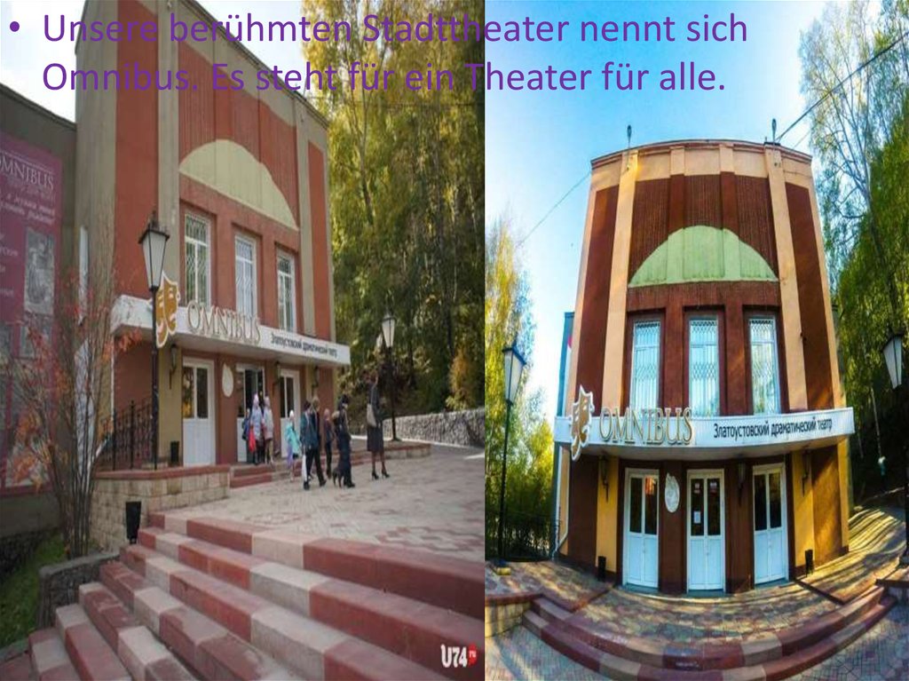 • Unsere berühmten Stadttheater nennt sichOmnibus. Es steht für ein Theater für alle.