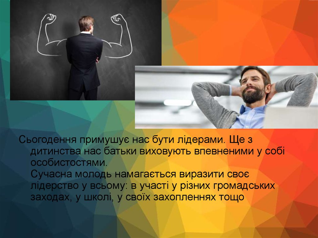 Сьогодення примушує нас бути лідерами. Ще здитинства нас батьки виховують впевненими у собі