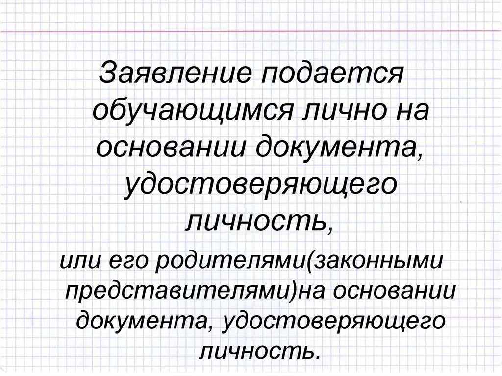 Заявление подаетсяобучающимся лично на
