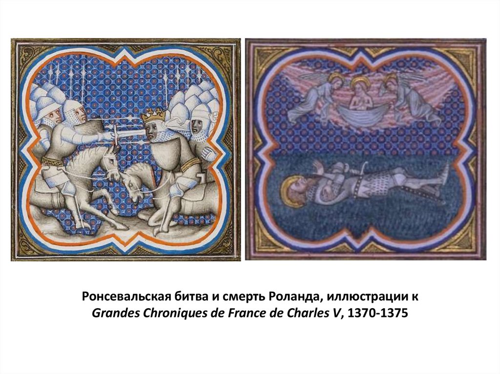 Ронсевальская битва и смерть Роланда, иллюстрации кGrandes Chroniques de France de Charles V, 1370-1375