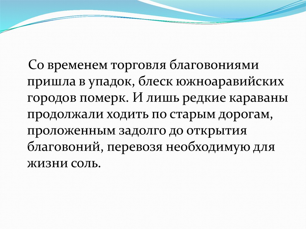 Со временем торговля благовониямипришла в упадок, блеск южноаравийских
