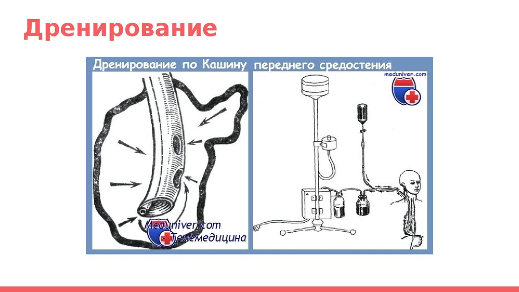 Дренирование переднего средостения через ложе удаленного мечевидного отростка.12.