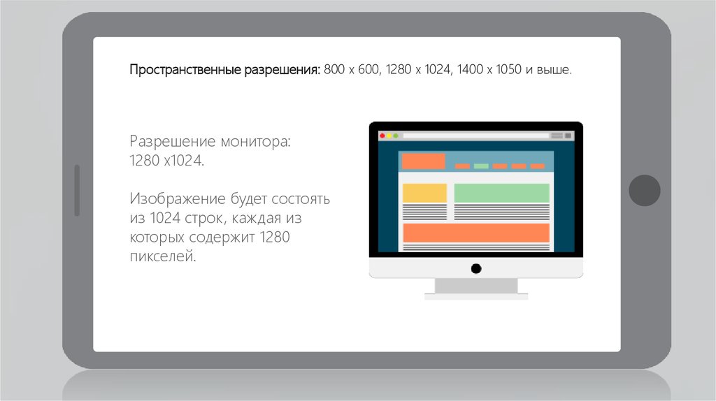 Пространственное разрешение монитора —то количество пикселей, из которых