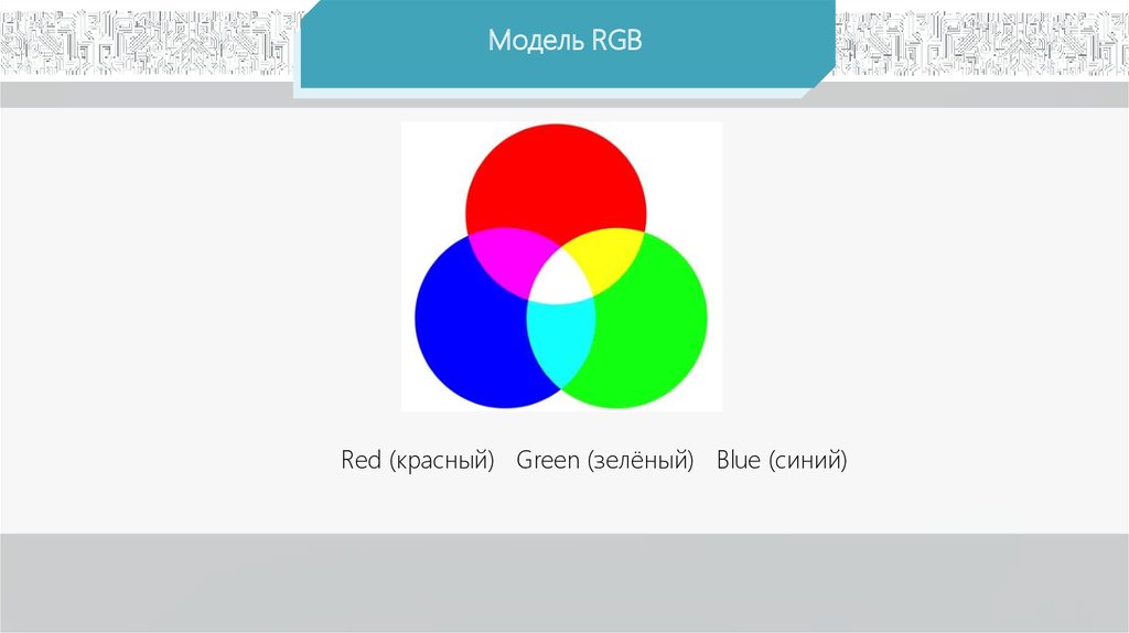 Модель RGBRed (красный) Green (зелёный) Blue (синий)