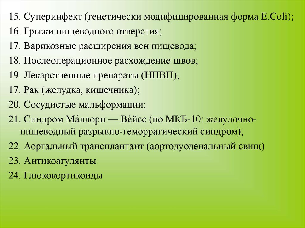 Перечень болезней, являющихся причинами острых желудочно-кишечных кровотечений