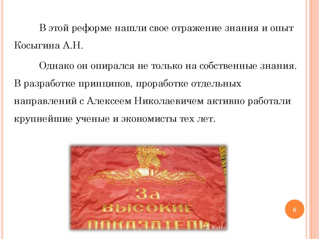 В этой реформе нашли свое отражение знания и опытКосыгина А.Н.