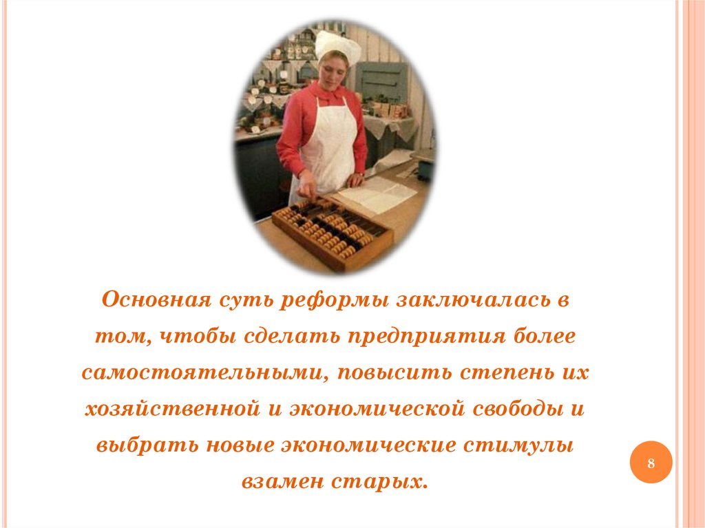 Основная суть реформы заключалась втом, чтобы сделать предприятия более