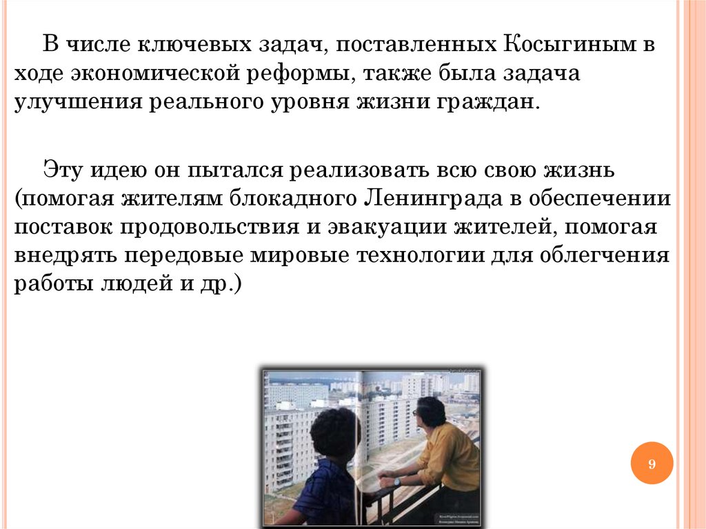 В числе ключевых задач, поставленных Косыгиным входе экономической реформы, также была задача