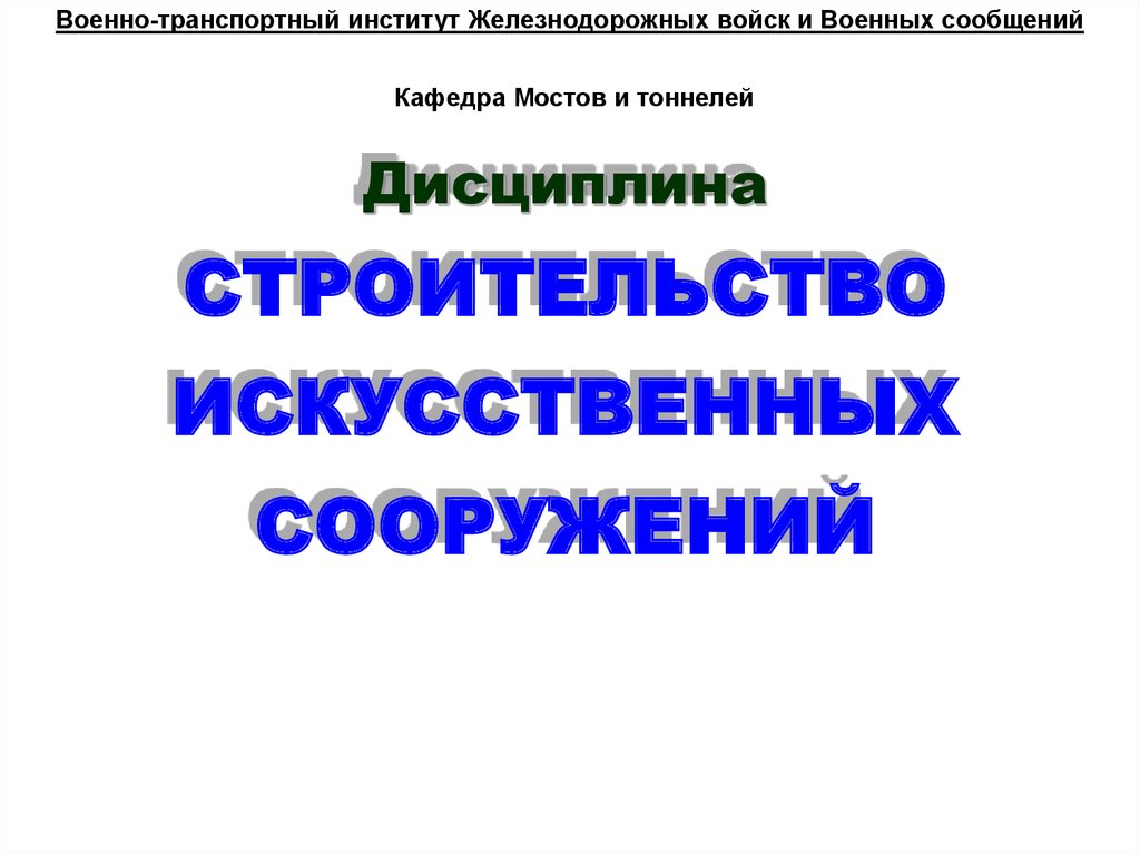 1. Дисциплина СТРОИТЕЛЬСТВО ИСКУССТВЕННЫХ СООРУЖЕНИЙ