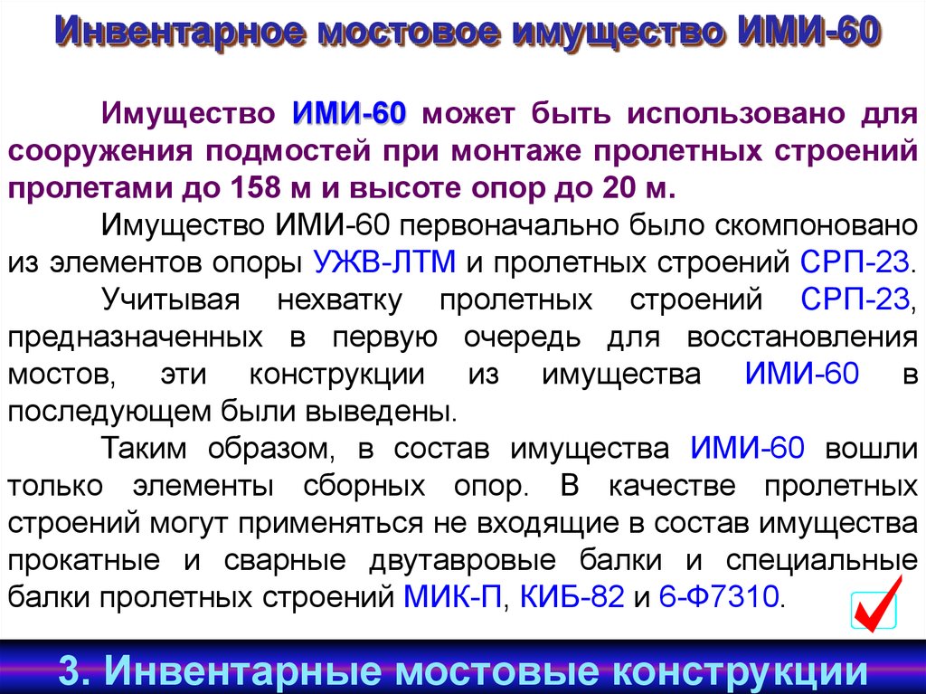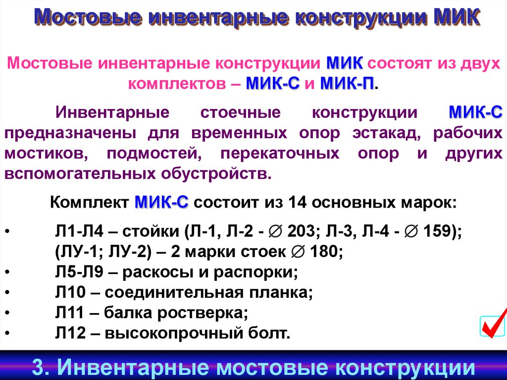 Мостовые инвентарные конструкции МИКМостовые инвентарные конструкции МИК состоят из двух