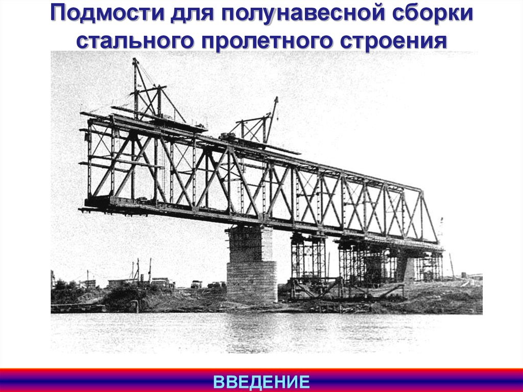 Подмости для полунавесной сборкистального пролетного строения