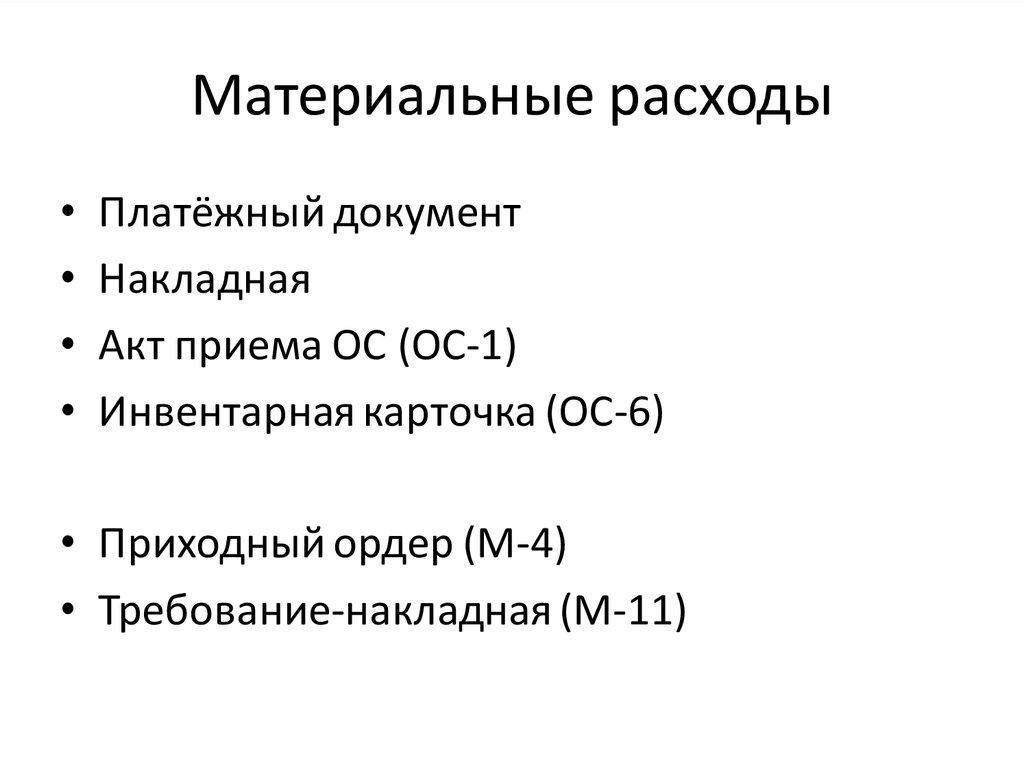 Материальные расходыПлатёжный документ