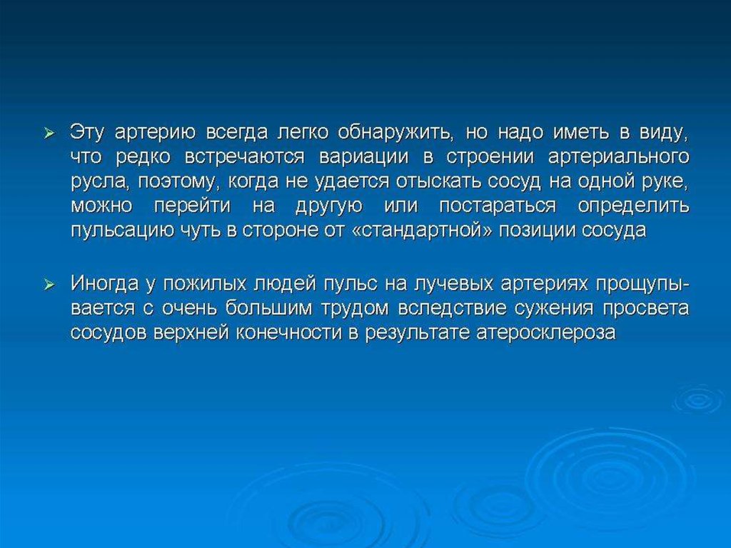 Определение пульса на лучевой артерии