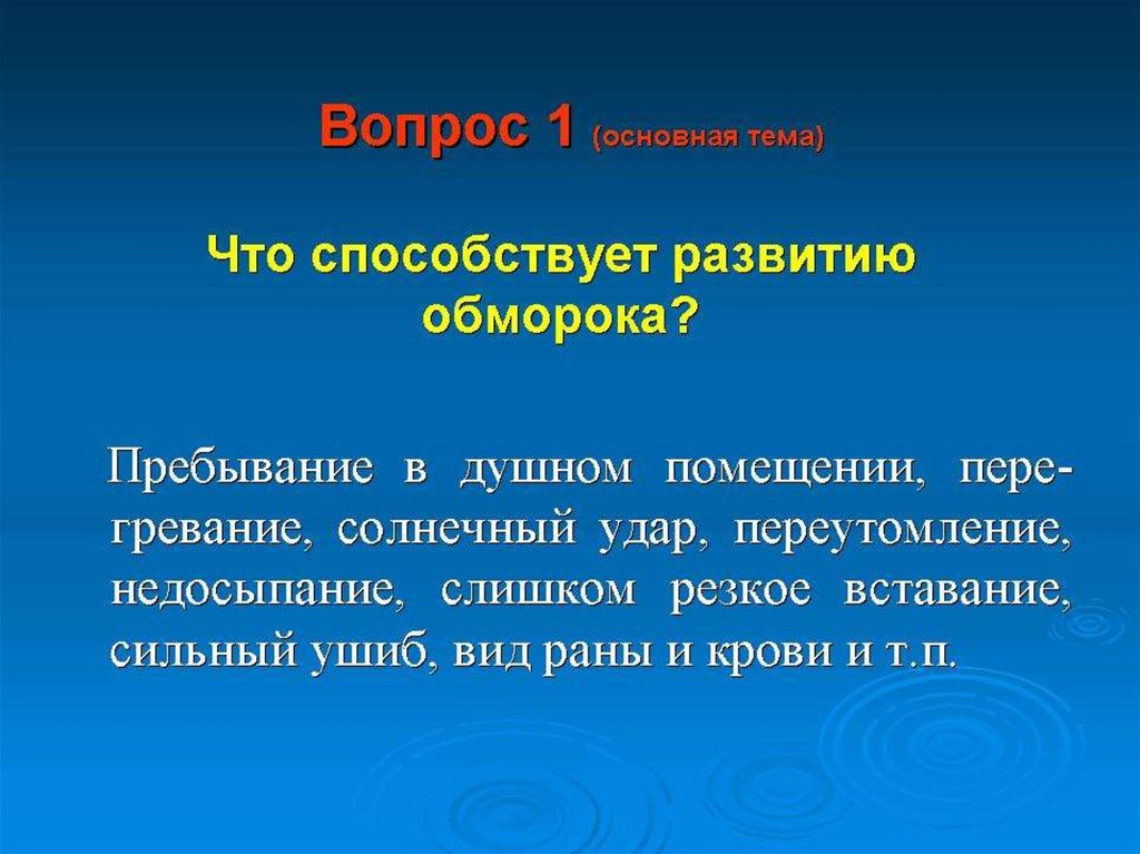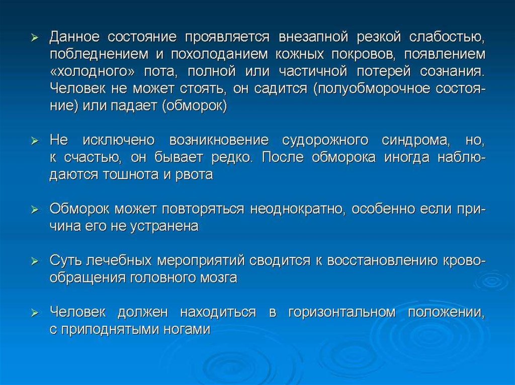 Острая сердечно-сосудистая недостаточность (обморок, шок)