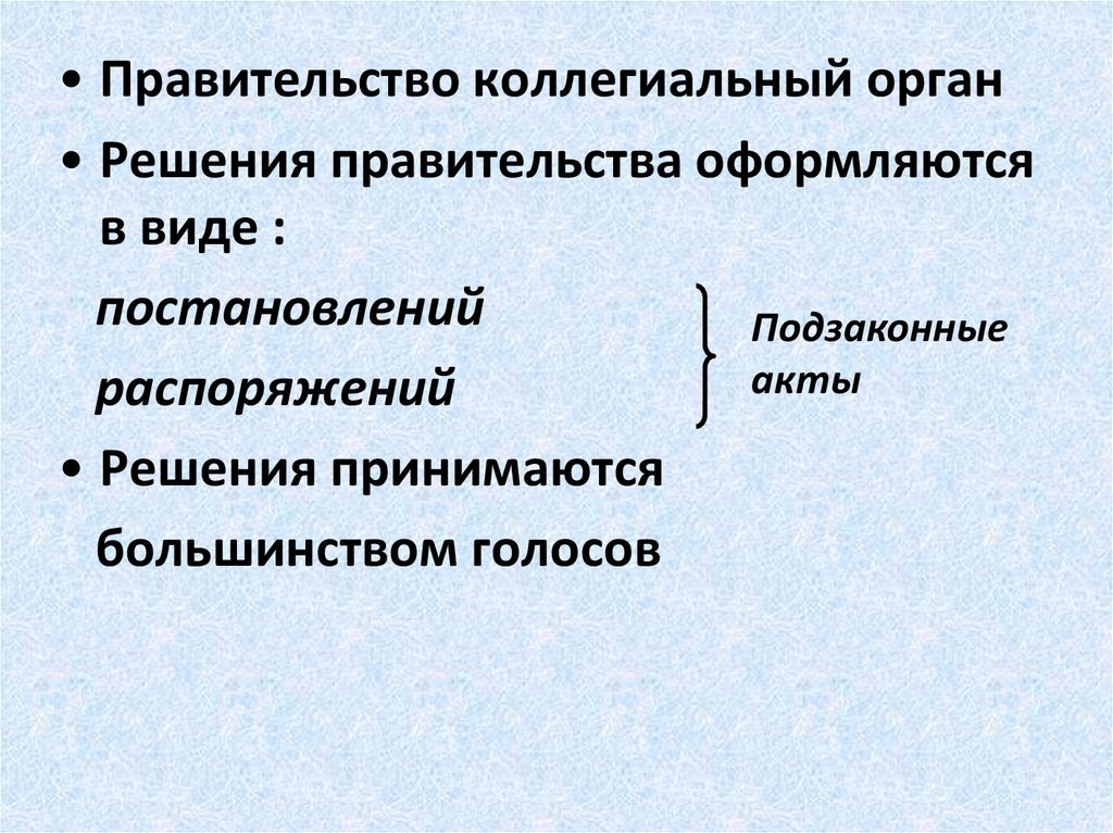 • Правительство коллегиальный орган• Решения правительства оформляются