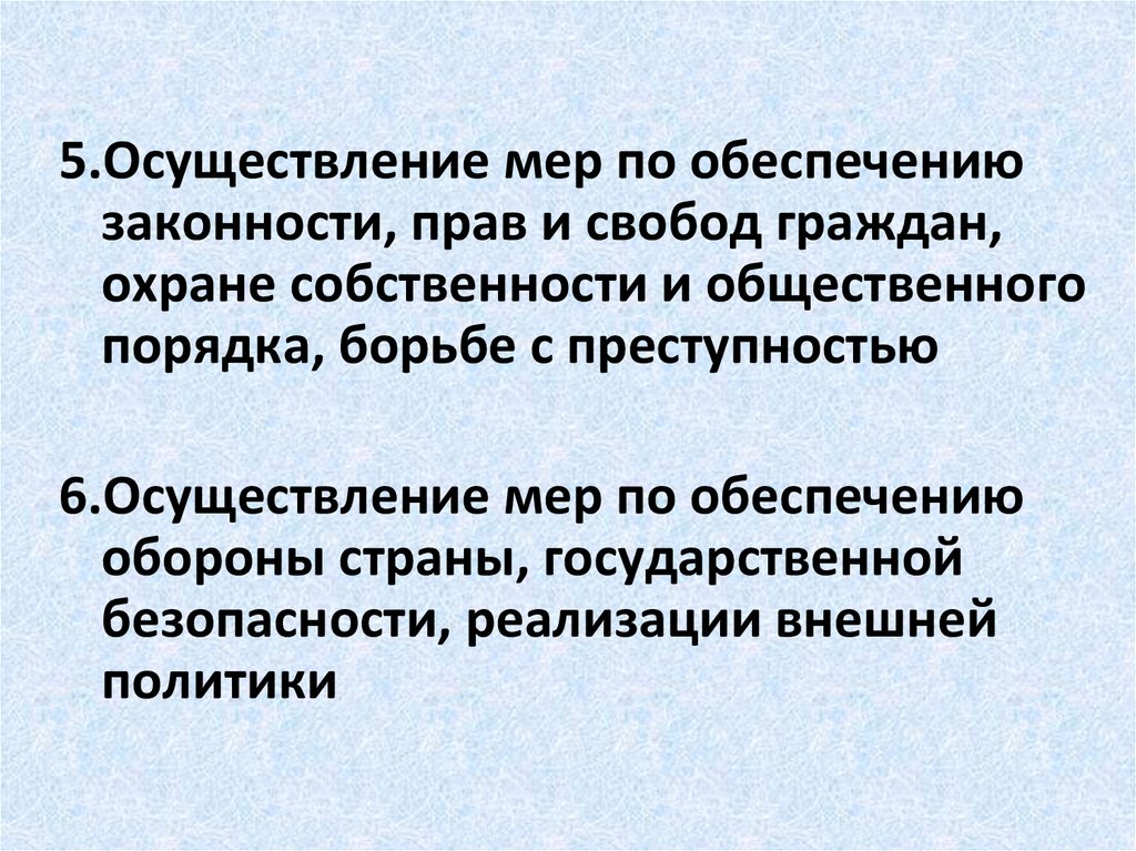 5.Осуществление мер по обеспечениюзаконности, прав и свобод граждан,