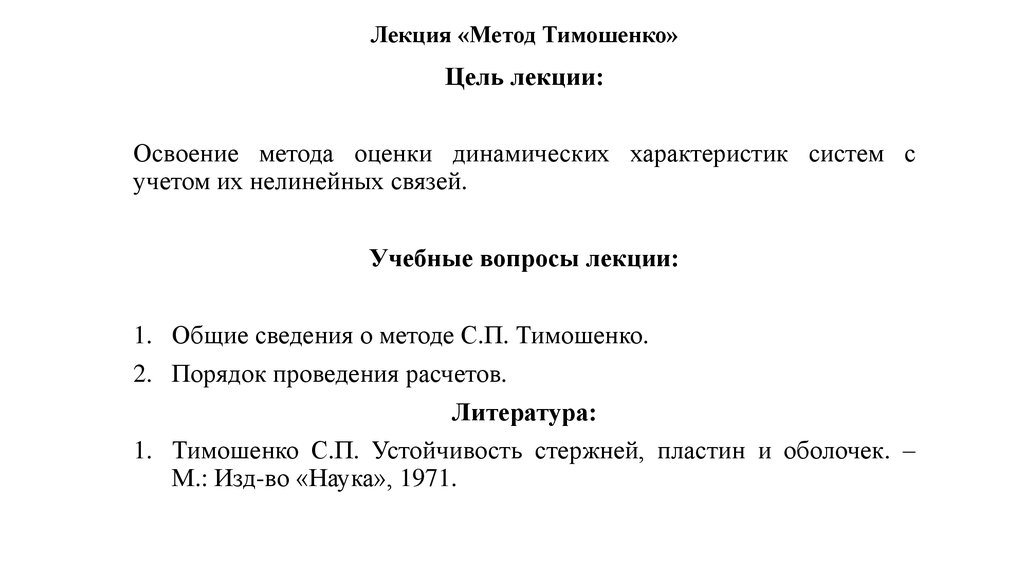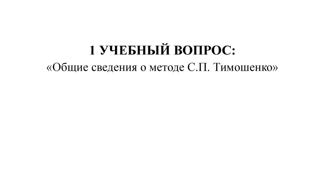 1 УЧЕБНЫЙ ВОПРОС:«Общие сведения о методе С.П. Тимошенко»