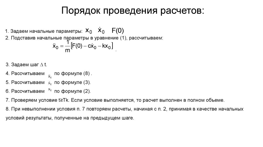 7. Проверяем условие t≥Tk. Если условие выполняется, то расчет выполнен в полном объеме.