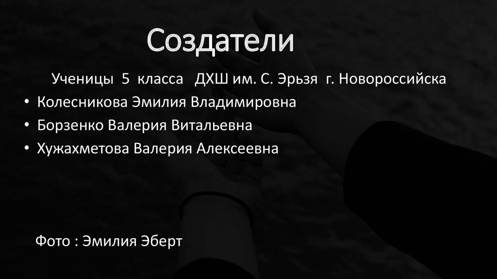 Ученицы 5 класса ДХШ им. С. Эрьзя г. Новороссийска• Колесникова Эмилия Владимировна