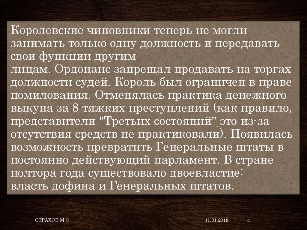 Королевские чиновники теперь не моглизанимать только одну должность и передавать