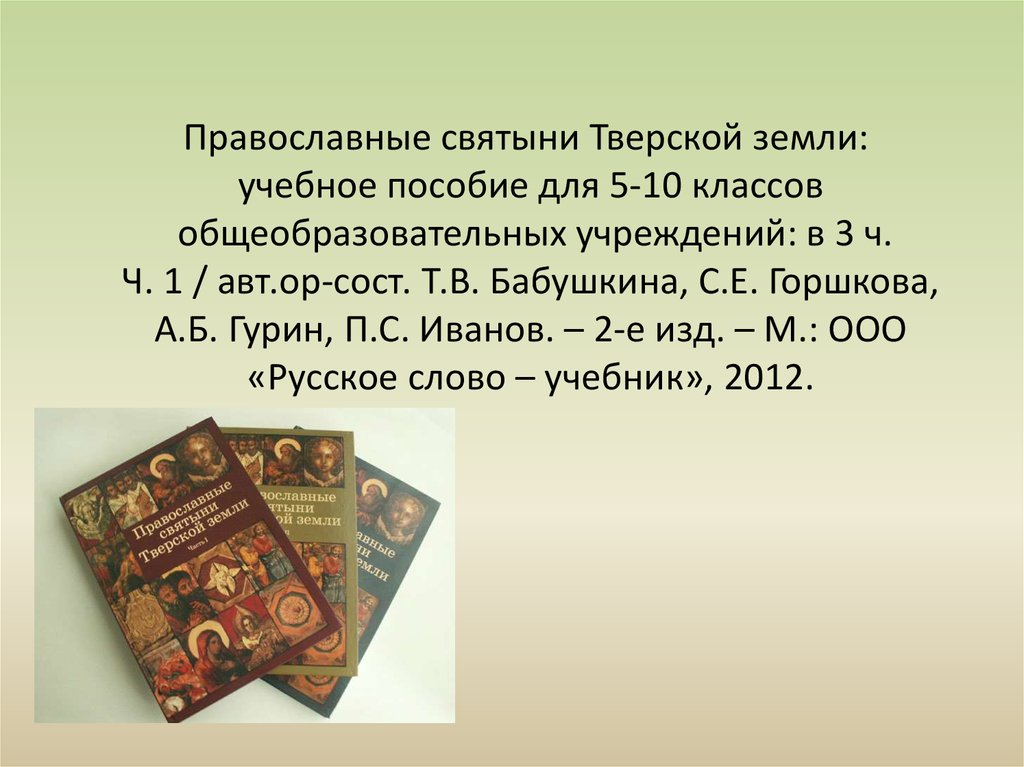 Православные святыни Тверской земли:учебное пособие для 5-10 классов