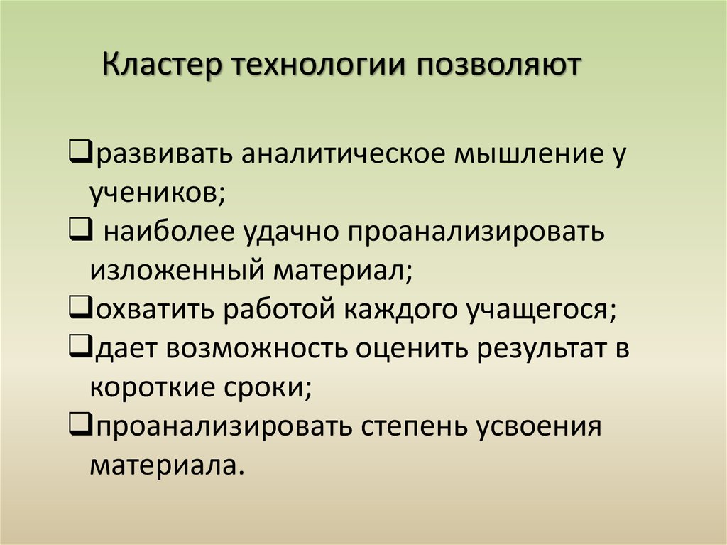 Кластер технологии позволяютразвивать аналитическое мышление у