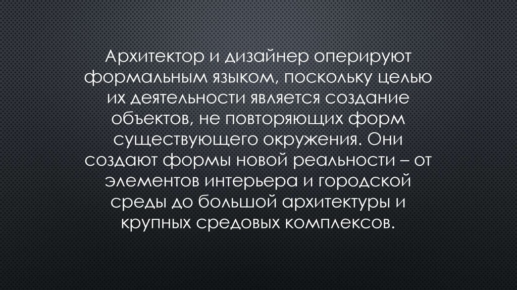Архитектор и дизайнер оперируютформальным языком, поскольку целью