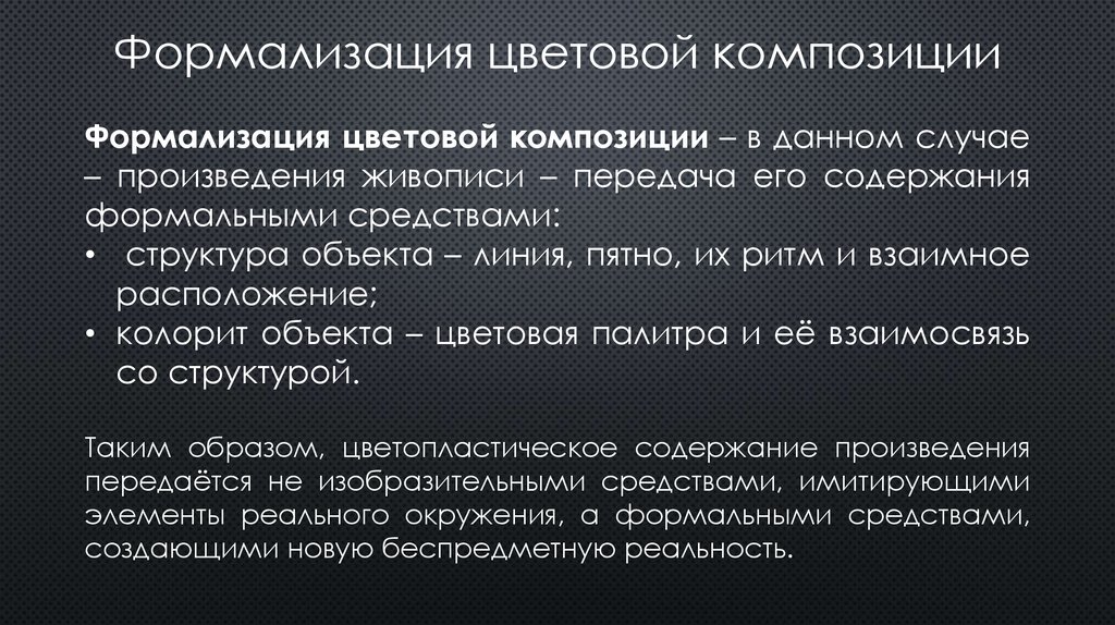 Формализация цветовой композицииФормализация цветовой композиции – в данном случае