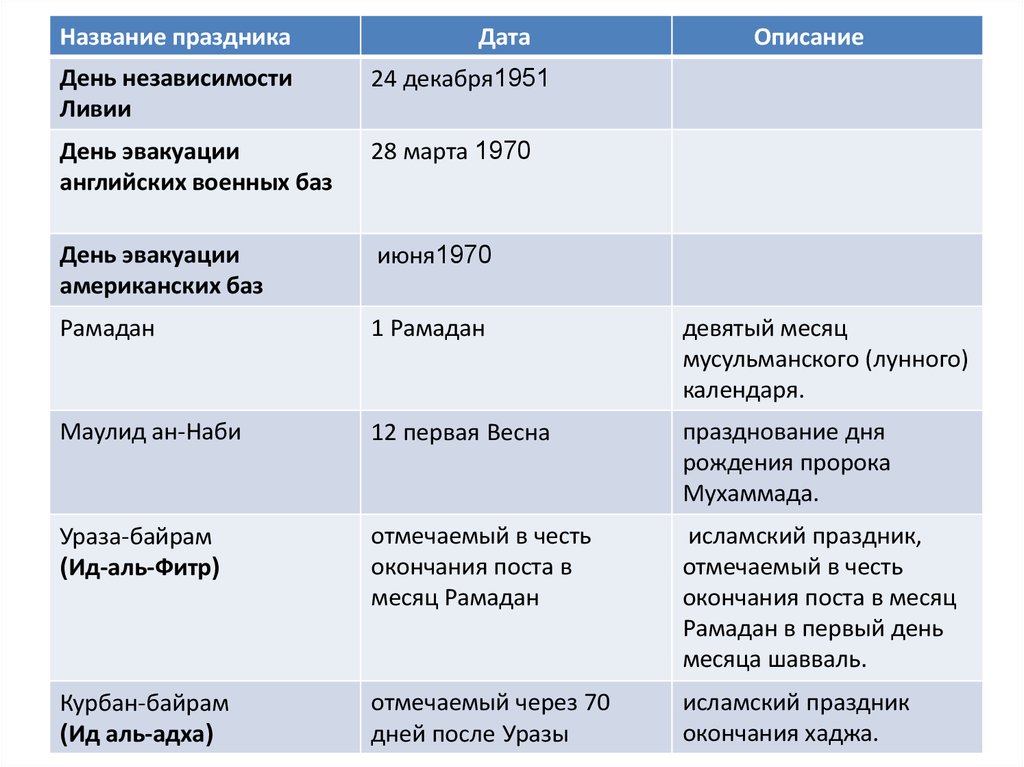 День независимости ЛивииДень эвакуации английских военных баз