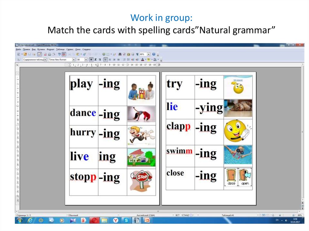 Work in group:Match the cards with spelling cards”Natural grammar”