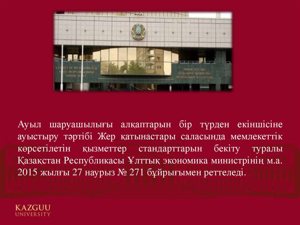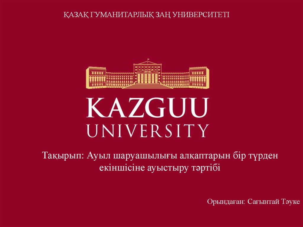 ҚАЗАҚ ГУМАНИТАРЛЫҚ ЗАҢ УНИВЕРСИТЕТІТақырып: Ауыл шаруашылығы алқаптарын бiр түрден