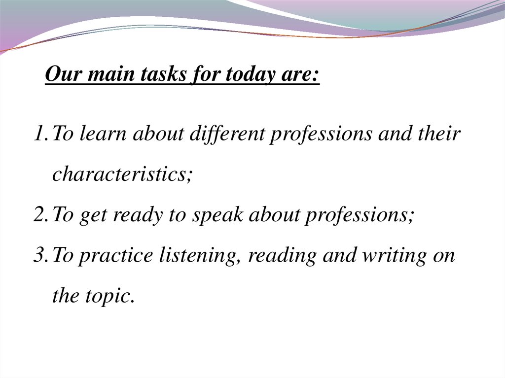 4. 1. What are the most popular professions? 2. What kind of job would you like to have? 3. What do you expect from you future