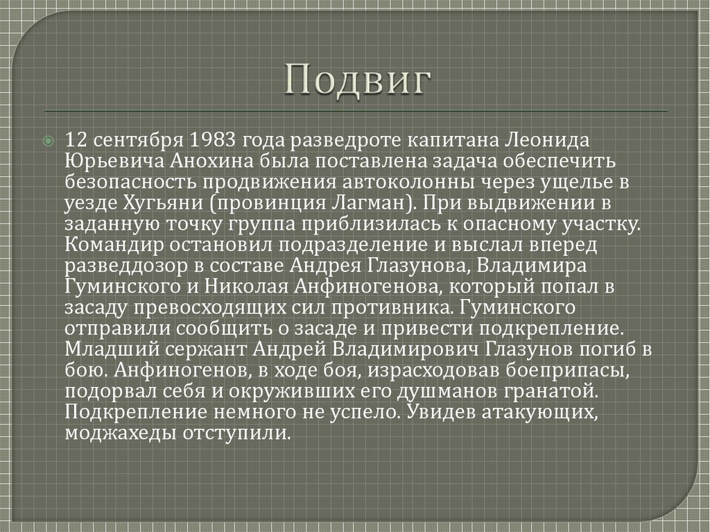 12 сентября 1983 года разведроте капитана ЛеонидаЮрьевича Анохина была поставлена задача обеспечить