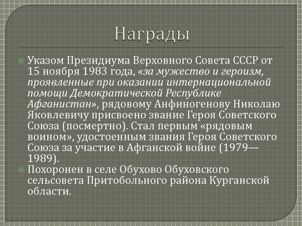 бою. Анфиногенов, в ходе боя, израсходовав боеприпасы,