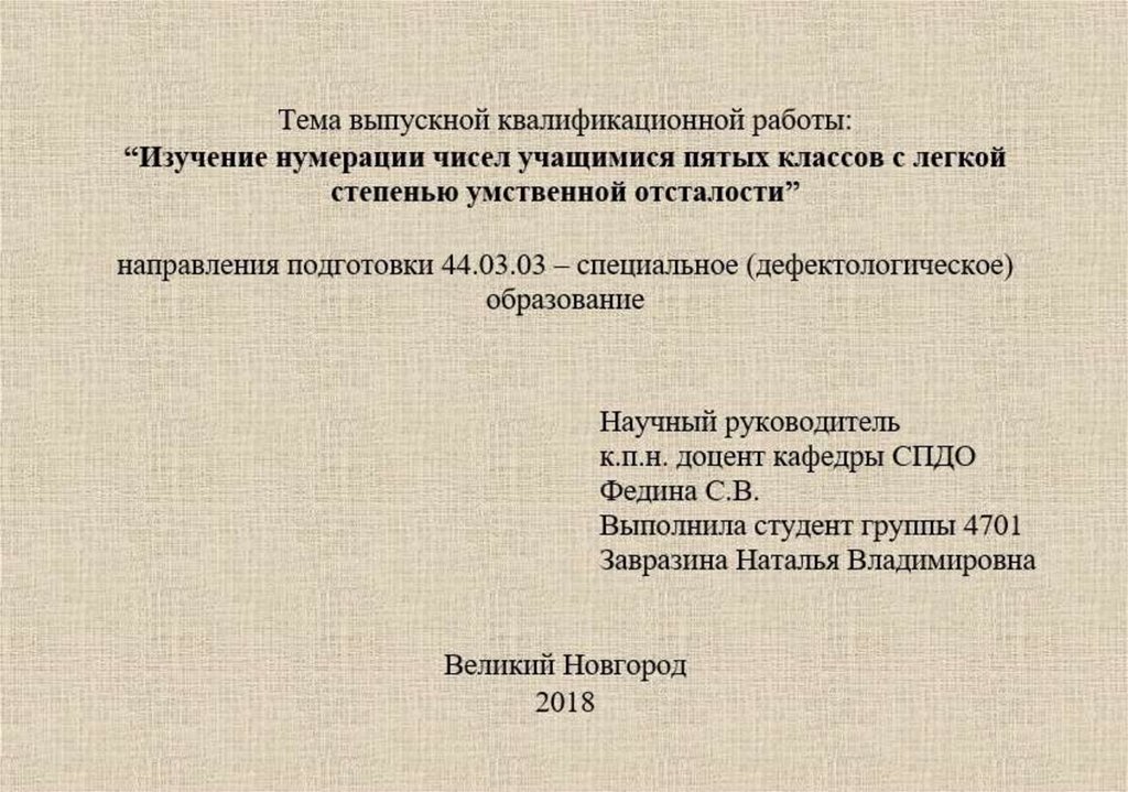 Изучение нумерации числе учащимися пятых классов с легкой степенью умстенной отсталости