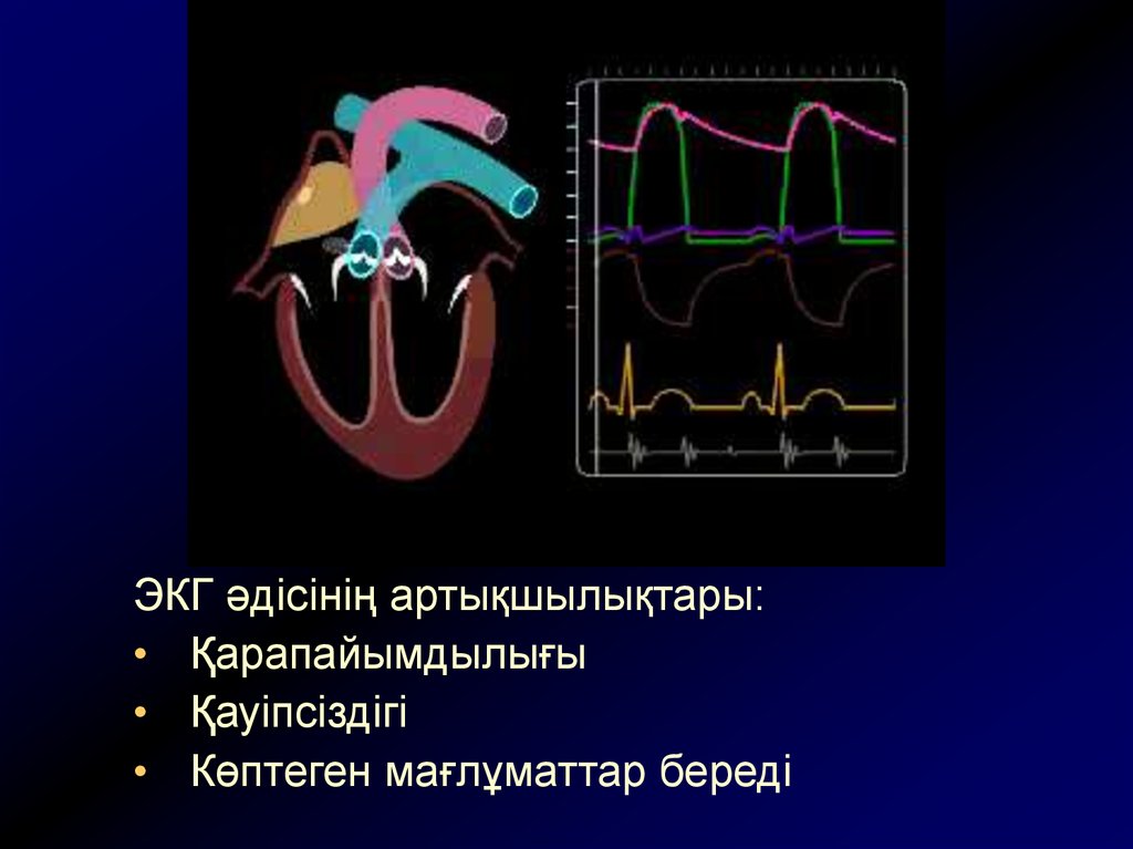 ЭКГ әдісінің артықшылықтары:• Қарапайымдылығы