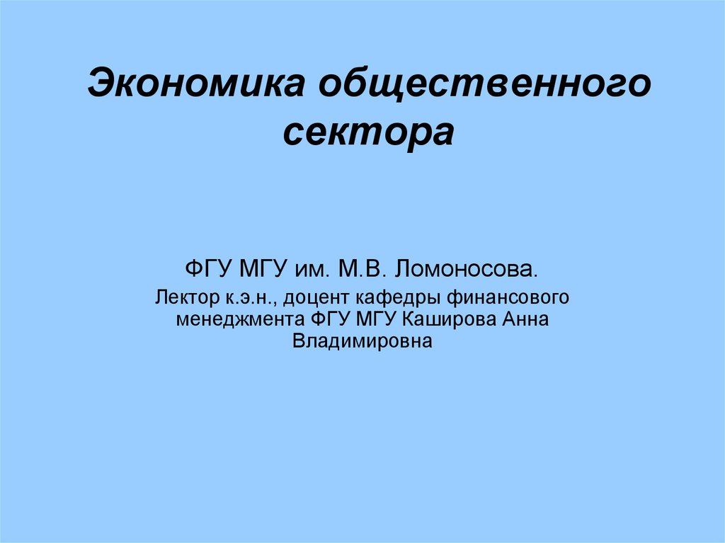ФГУ МГУ им. М.В. Ломоносова.Лектор к.э.н., доцент кафедры финансового