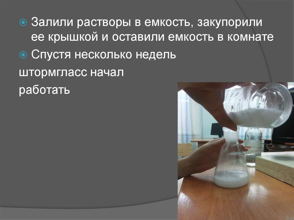 Залили растворы в емкость, закупорилиее крышкой и оставили емкость в комнате