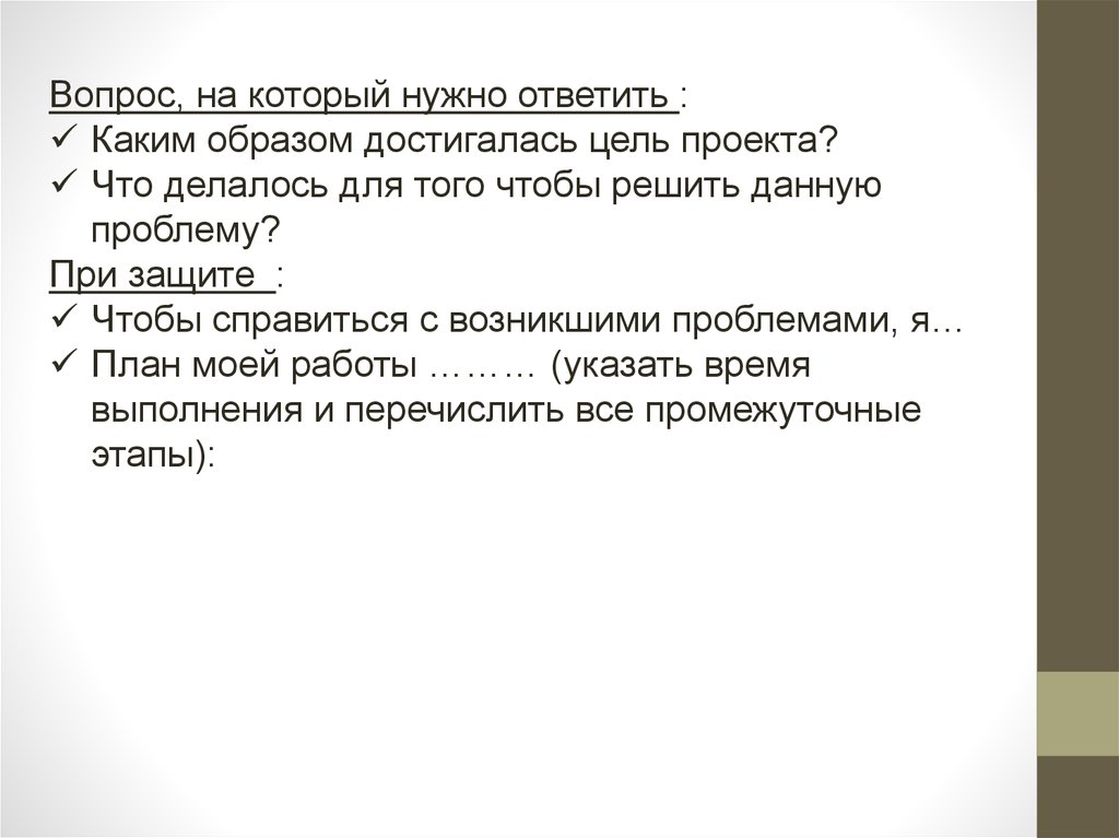 Вопрос, на который нужно ответить :Каким образом достигалась цель проекта?