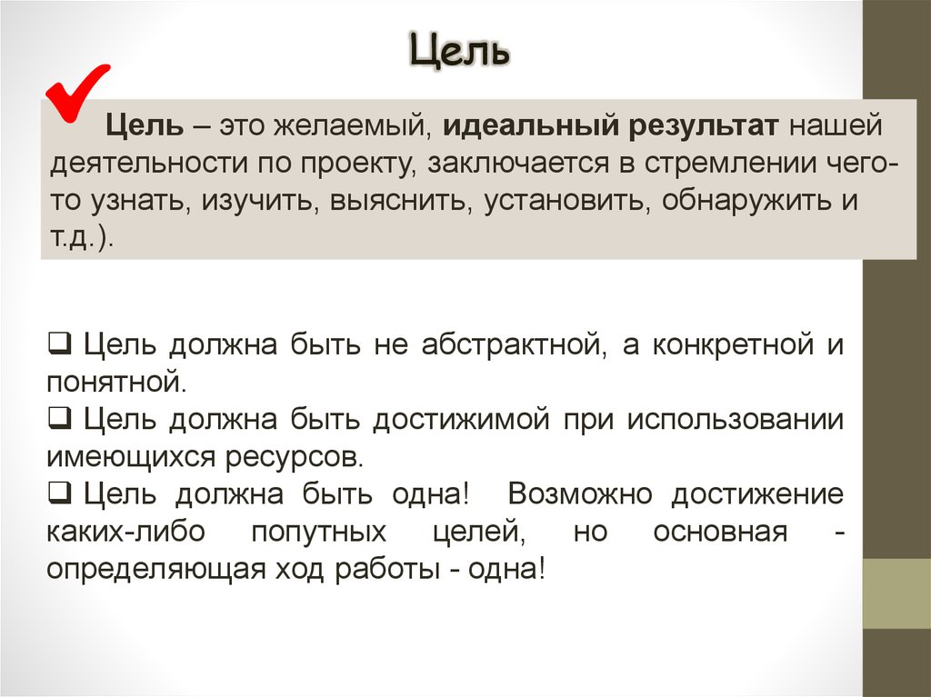 каких-либо попутных целей, но основная определяющая ход работы - одна!
