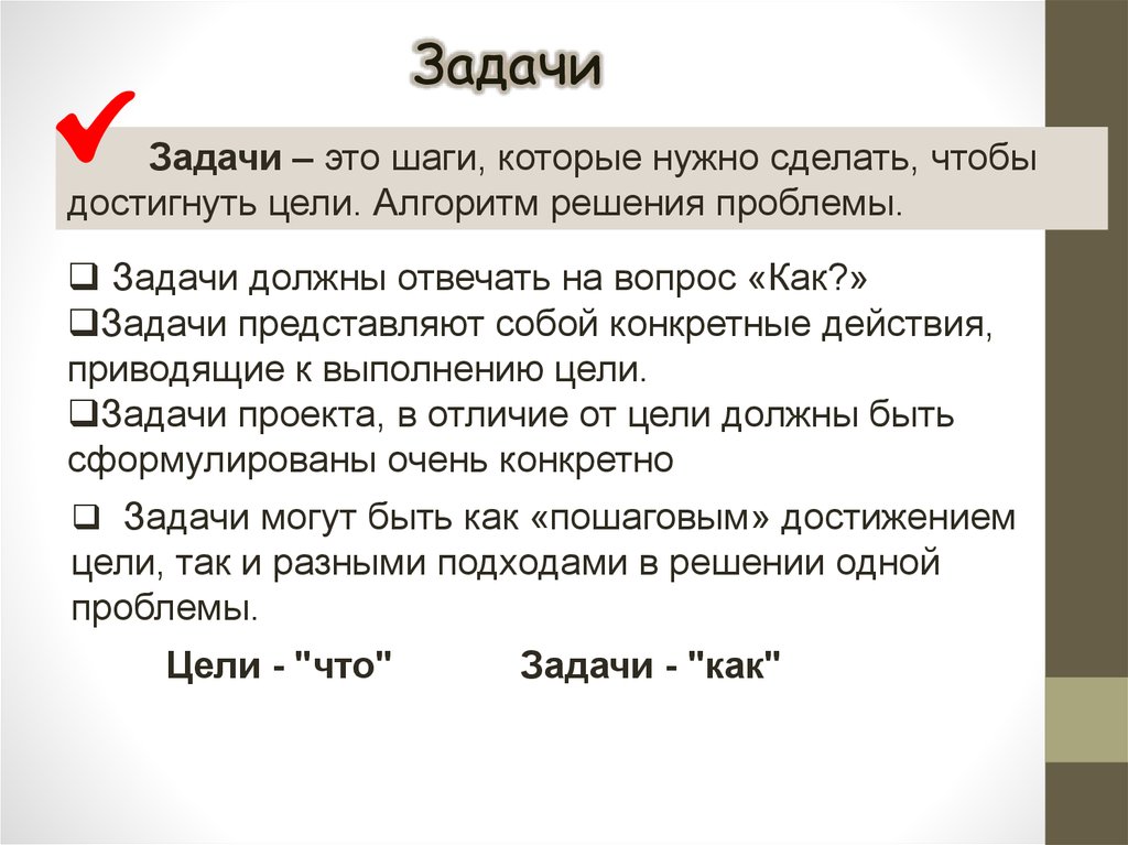 ЗадачиЗадачи – это шаги, которые нужно сделать, чтобы